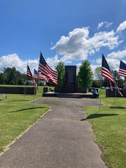 Flags were placed at the graves of fallen heroes who made the ultimate sacrifice for our country, and big flags lined the cemetery’s paths, setting the stage for a memorable spectacle of Patriotism. The Merrill City Band performed a number of patriotic tunes, including a stirring collection of military hymns honoring each United States branch of service.