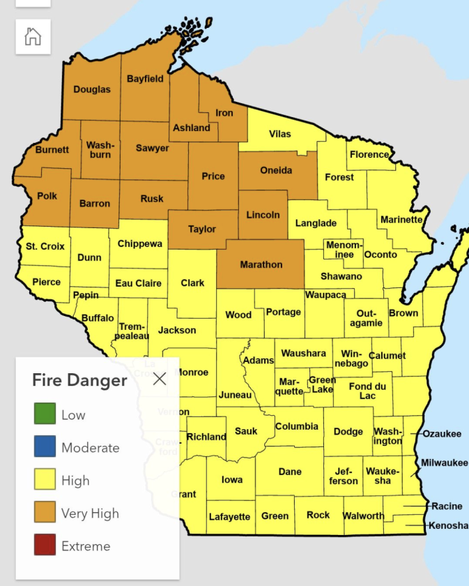 At least eight wildland fires have been reported over the past week across Oneida, Vilas, Lincoln, Langlade and Price Counties, as wildfire danger remains elevated despite recent rain.
